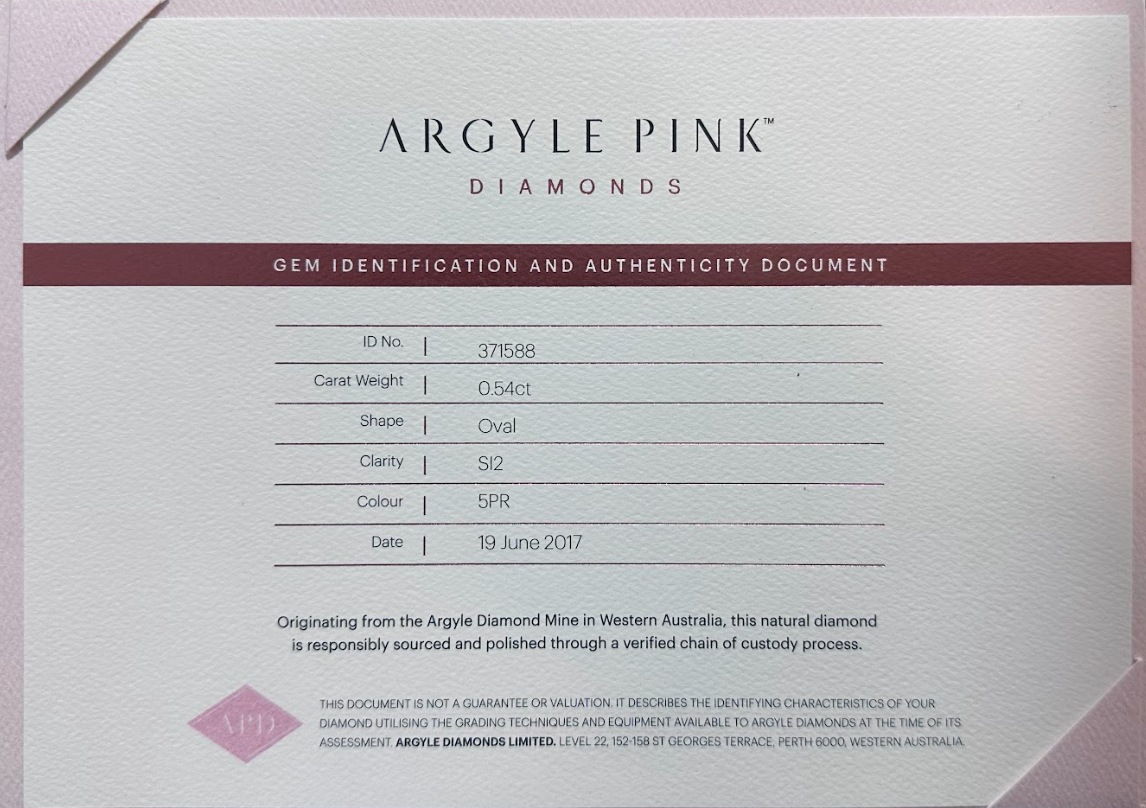 | Certification/Lot No. | Argyle A371588 / GIA 6183081253 |