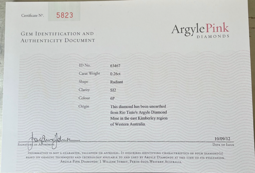 Only the diamonds that are released and marketed through the Argyle diamond mine have the most pure colour tones.