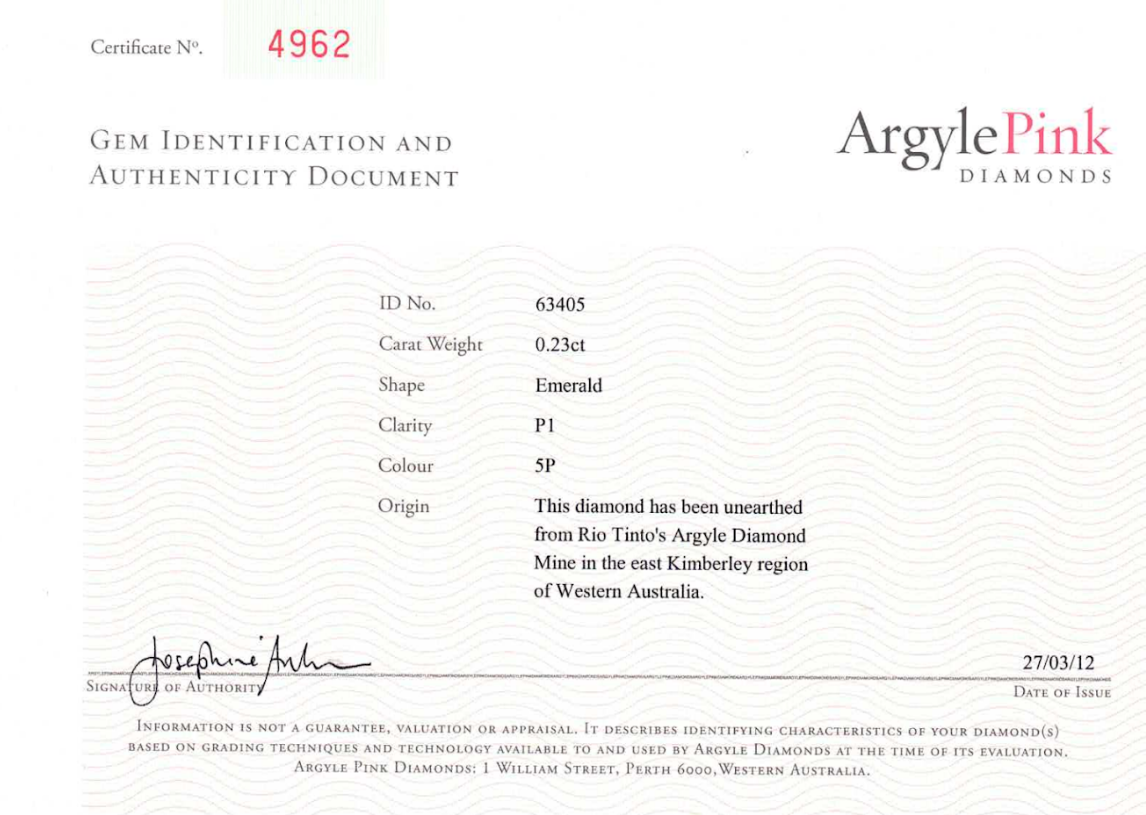 | Colour | 5P - Fancy Intense Pink |