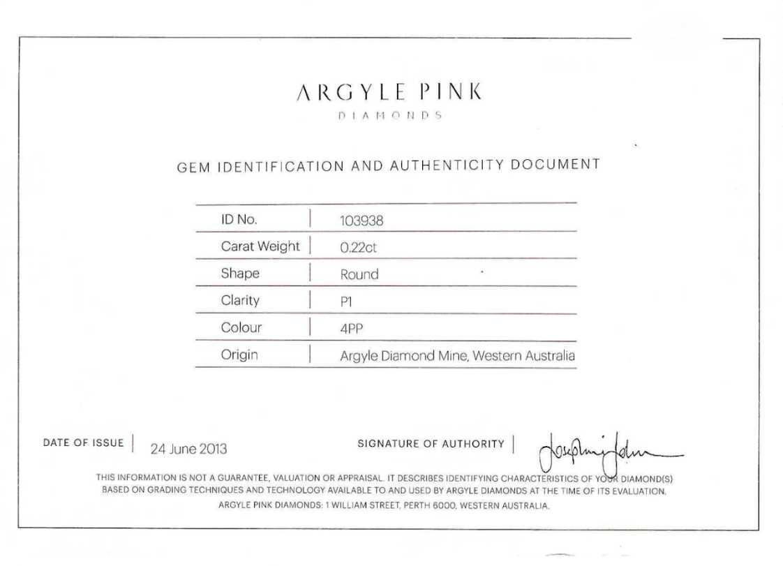 Only the diamonds that are released and marketed through the Argyle diamond mine have the most pure colour tones.