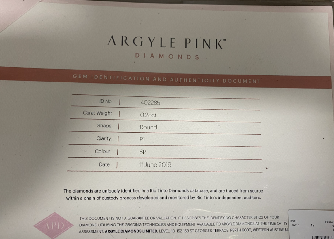 | Colour | 6P - Fancy Intense Pink |