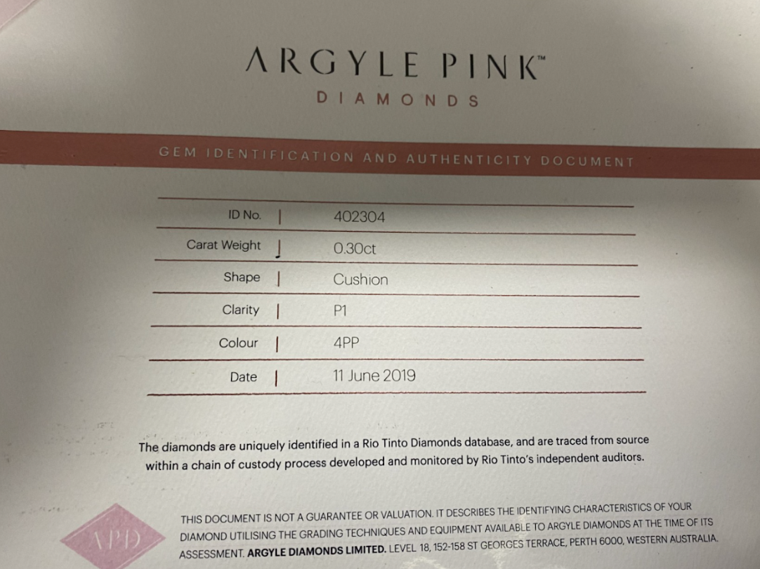 | Colour | 4PP - Fancy Intense Purple Pink |