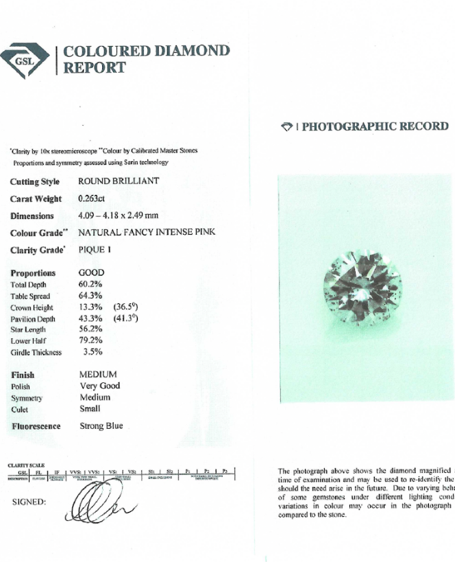 | Colour | 3P - Fancy Intense Pink |