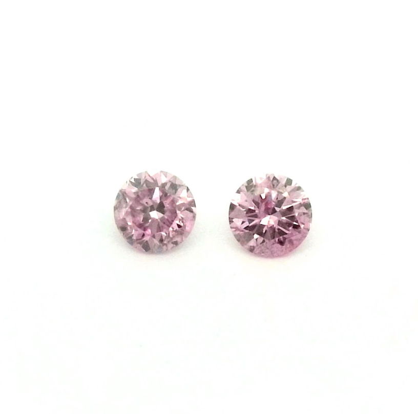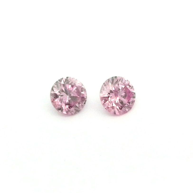 2 = 0.08ct 5PR+ SI Matched Pair of Round Pink Australian Diamonds